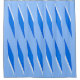 Esse trabalho de arte incorpora padrões azul-Crayola e branco que criam uma interação distinta contra um fundo azul-bebê macio, resultando em uma delicada cortina geométrica de chás.