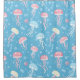 Atualize a estética do seu banheiro com um toque luxuoso adicionando esta magnífica cortina de chuveiro adornada com um design contínuo de águas-vivas em azul pastel e rosa.