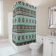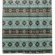 O padrão inspirado no cobertor nativo americano/tribal apresenta designs geométricos. Paleta: marrom, laranja, azul-céu e branco creme.