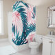 Cortina Para Box Padrão de folhas de palma verde e rosa