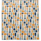 Esta cortina de chá tem um design moderno do século médio de ovais e retângulos em padrões que se repetem na design.