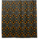 Um belo, intrincado, design geométrico e nó celta azul-alaranjado e cinzento sobre fundo negro, com uma textura metálica moderna.