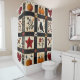 Esta cortina de chá apresenta um padrão rústico inspirado em manta organizado em quadrados e blocos retangulares com motivos quentes de outono. A manta apresenta abóboras, um pássaro preto com peito avermelhado, corações, estrelas vermelhas e ramos florais em tons sujos de vermelho, laranja e marrom. Os sotaques geométricos como a xadrez e texturas cruzadas acrescentam ao toque feito à mão. Com uma estética de fazenda aconchegante em preto, creme e tons de outono, este padrão é perfeito para a decoração do outono, estilo primitivo do país e encanto da época da colheita rústica.