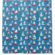 Padrão com ilustração de veleiros vermelhos e amarelos sobre fundo azul.