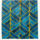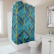 Cortina Para Box Padrão Dourado e azul sobre fundo verde, costura