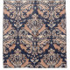 Padrão simétrico sem soldadura no estilo Damask. Lebres saltitantes, um ornamento de plantas em tons de bege em um fundo azul escuro.