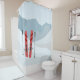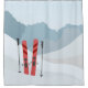 Paisagem de abstrato inverno com vista panorâmica de montanha, equipamento de esqui vermelho, rastro e céu azul