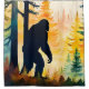 Sasquatch caminhando na floresta, paisagem do outono no pôr do sol AI Gerada arte por minx267