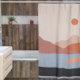 Cortina Para Box Paisagem Retro de Meados do Século Moderno Laranja