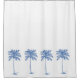 Esta cortina de chá inspirada na costa moderna apresenta palmeiras azuis sobre um fundo de branco sólido. Divertido para uma praia inspirou um banheiro.