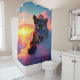 Esta cortina de chá tem um design de pantera nela.