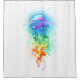 Água-viva grande, iridescente, desenhada artisticamente, brilhante, com longos tentáculos em branco, pintados sobre fundo de cor aquosa multicolor. Água-viva.
