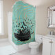Dourada e teal pena verde de... Pássaros negros, corvos ou cortina de chá Ravens. Combinação de lances em voo com cor verde-alta. Você pode personalizar suas cores e estilo para se adequar ao gosto da cortina do banheiro. Belas aves para amantes de corvos, corvos e pássaros negros na fantasia.