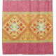 Padrão de tecido em tons vermelhos e amarelos com aves elegantes, trazendo um toque vivo e vibrante. Perfeito para moda, têxteis e designs decorativos.