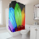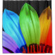 Esta é uma bonito cortina de chá com uma fotografia de uma flor em cores arco-íris.