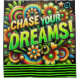 Esta cortina de chá motivacional diz "Persiga seus sonhos!" nela.