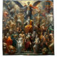 Esta cortina de chá tem pessoas de fantasia nela.