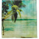 Cena Tropical de Praia Vintage Chá Cortina apresenta arte de vintagem com tema de praia com palmeiras com folhas em vários tons de verde verde quente amarelo a verde florestal profundo, um céu em azul de Carribean com nuvens brancas-sujas-cinzas, um oceano ou mar relativamente calmo que pega o azul no céu e o amarelo-verde das folhas de palma, e, claro, a espuma surf conhecendo a areia branca. Esta pintura tem um olhar vintage com as cores do céu, da água e da palmeira nos tons mais quentes de azul e verde que induz sentimentos de calma e um pouco de nostalgia. Para combinar e coordenar decorações e acessórios para suas atividades domésticas, de escritório, escolares, de carros e ao ar livre, visite nossa loja em zazzle.com/DIYDecor.