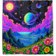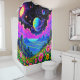 Esta cortina de chá artístico tem uma bonito cena planetária nela.