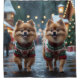 This festive design captures the joyful spirit of the holiday season, featuring an adorable dogs.Nestled in a winter wonderland, complete with a decorated Christmas tree, and beautifully wrapped presents. Snowflakes gently fall, adding a magical touch to the scene, while the vibrant colors of the holiday decorations create a warm and cheerful atmosphere.