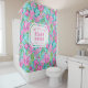 Este design de cortina de chá apresenta um impressão de verão de hibisco pré-disquete. Você pode personalizar com seu nome e localização. Esta cortina de chá é perfeita para uma cabana de praia ou aluguel de férias.