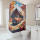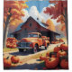 Colheita de Abóbora de outono com Caminhão de Pickup, folhas de queda e abóboras por toda parte. Decoração de queda da cortina do chá.