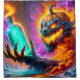 Esta cortina de chá tem um homem de abóbora louco nela.