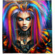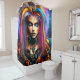 Esta cortina de chá tem um punk rocker colorido.