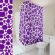 Um padrão repetitivo de círculos roxos de tamanhos variados é densamente embalado contra um fundo branco. Ele cria uma vibração de pop-arte e pode ser usado como papel de parede ou design de tecido devido à sua natureza vibrante e divertida.