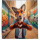 Esta cortina de chá tem uma raposa que são as mãos fazeres do coração pintadas nela.