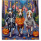Adorável Rat Terriers vestidos com fantasias lúcidas de Halloween carregar baldes de abóbora enquanto trick-or-tratando sob o céu iluminado. Este design festivo põe em evidência os casaco suaves, os ouvidos perecíveis e a personalidade enérgica da raça, capturando perfeitamente a atmosfera assustadora e divertida da noite do Dia das Bruxas. Uma celebração alegre para amantes de cães e fãs de Halloween.