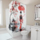 Step into a tranquil moment of timeless elegance. This watercolor-style shower curtain features a graceful geisha in a red floral kimono, strolling along a misty stone path beneath blooming cherry blossoms. Her parasol and traditional updo adorned with flowers evoke the refined beauty of Japanese culture. A distant pagoda shimmers through the haze, adding depth and serenity to the scene. Perfect for those who appreciate Japanese aesthetics, this design brings harmony, tradition, and seasonal charm to your daily ritual.