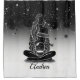 Uma silhueta encantadora de uma mulher berrando uma bola de cristal brilhante, simbolizando maravilha e introspecção. O pano de fundo apresenta um luxuoso boque preto-e-ouro com luzes suaves e cintilantes celestes, evocando uma atmosfera sonhadora.