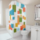 Esta cortina de chá tem um design moderno século médio de retângulos e linhas em cores da década de 1960.