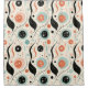 A Beige And Black Retro Mid Century Shower Curtain Abstract In Orange, Black, And Blue Colors