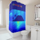 Tema tropical, vista de paisagem insular com fundo de sol em cor azul