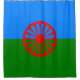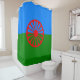 Esta design apresenta a bandeira romani, que é a bandeira internacional das pessoas romanichéis. A bandeira é constituída por um fundo azul e verde, representando os céus e a terra, respectivamente; contém também uma chacra vermelha de 16 raios, ou uma cartela, no centro, que representa a tradição itinerante das pessoas romanichéis e é também uma homenagem à bandeira da Índia. A bandeira foi aprovada pelos representantes de várias comunidades romanichéis no primeiro Congresso Mundial Romani (WRC), realizado em Orpington em 1971.