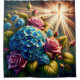 Cortina Para Box "Rosas e Hydrangeas com Arte Cruzada"