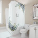 Design apresenta um buquê de eucalipto verde e lindas hortênsias com uma borda de cinza e é monograma e pode ser personalizado com o seu começo.