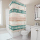 Rustic celestial stripe pattern shower curtain featuring moon phases, sun symbols, and tribal-inspired details in earthy teal and clay tones. A calm, grounding design ideal for boho lovers, spiritual creatives, and nature-inspired interiors. A thoughtful gift for moon watchers, astrology fans, and earthy souls.