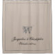 Monograma Russo + Ambos Os Nomes Recém-Casados, Chá De Presente. Beige quente personalizado e Chá monograma de cinzas. Legal escrita clássica para o monograma inicial, os nomes da noiva e do noivo e a data do casamento em um fundo bege sólido. Presente perfeito para recém-casados, ou bonito para o seu próprio banheiro. Clique em personalizar este modelo para personalizá-lo com os seus nomes, o seu sobrenome monograma inicial e a data estabelecida rápida e facilmente. Garantia de 30 Dias. Navios no mundo todo rápido. Monograma Russo + Ambos Os Nomes Recém-Casados Cortina De Chá Quic. Criado pelo artista RjFxx © *Todos os direitos reservados. #weddingdom #MonogrammedWeddingShowerCurtain #PersonalisedShowerCurtain #ZazzleMade