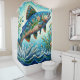 Cortina Para Box Salmão Jumping Mosaico Floral Azul Pêssego Verde