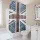 A bandeira russa do Reino Unido dispara a cortina de Chá para o seu banheiro. Estilo de Vintage design Reino Unido bandeira em vermelho e azul brilha. Usamos fotos de brilhos de faíscas.