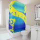 Esta cortina de chá tem uma fotografia de um skater nela.