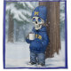 Esta cortina de chá mantém simples, mas atraente: um esqueleto num capuz azul do Michigan e um chapéu, cozinhando café na mão, parado em bosques serenos de neve. Ideal para o estilo de inverno gótico ao longo do ano.
