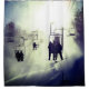 Esta cortina de chá tem uma foto de elevador de esqui nela.