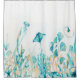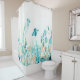 Uma cena submarina serena apresenta uma variedade de vida marinha, incluindo águas-vivas, raia-seca e cavalo-marinho em meio a uma série de corais coloridos e plantas marinhas. A composição usa matizes azuis e verdes macios para evocar um ambiente oceânico tranquilo.