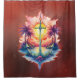 Solar anchor in a tropical paradise. Vibrant design with prominent anchor and cross, surrounded by palm trees, radiant sun and island scenery; neon palette and intense sunset for a bold and tropical look.