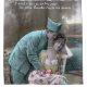 Um cartão postal francês vintage do dominio público com um soldado beijando uma mulher. Seria um presente excelente para Dia de os namorados, dia mais doce, aniversários.