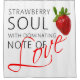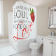 Morango vermelho com folhas verdes e um texto Alma de morango com nota dominante de amor. Um tipo de t-shirts, impressões e presentes para todos. Tema de amor e romance. Cortina de chá para decorar seu banheiro por diversão e bom humor.